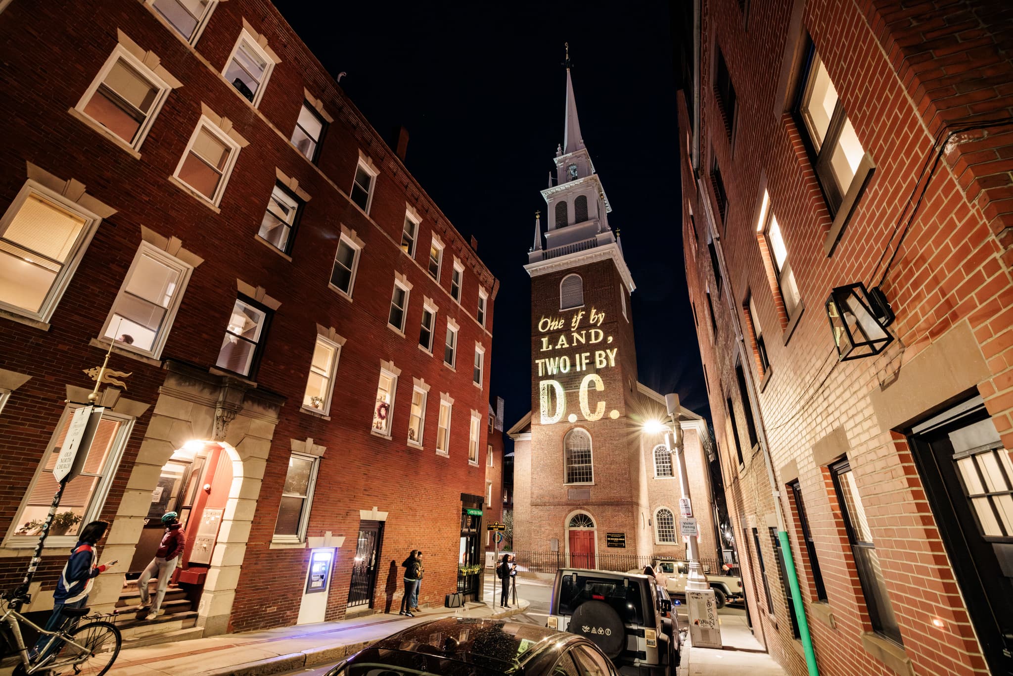 America’s fight for freedom didn’t end the moment we got independence. It continues. This reminder was emblazoned guerilla-style across some of the city’s most iconic historical landmarks, some featuring pithy phrases from the collective Silence Dogood, named after the pseudonym used by a young Benjamin Franklin. The projections erased time in a way only achievable through architecture and art. With “Once if by land, twice if by D.C.” projected across the steeple of Old North, 250 years of context are condensed into a single sentence, yet we all understand the message.