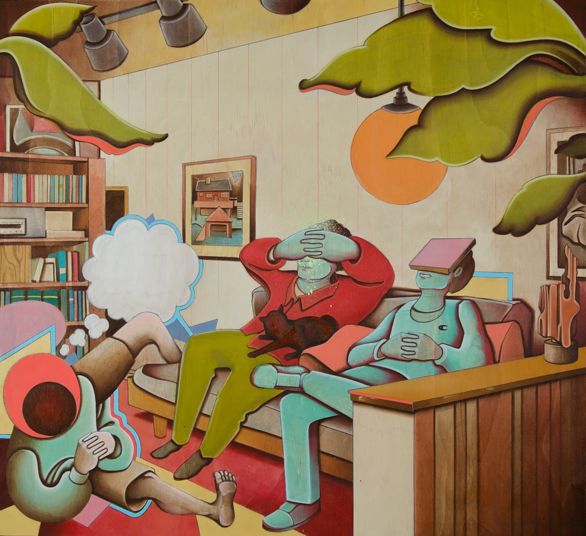David Guerra, founder of AREA Gallery, believes that the arts are critical in our search to understand and process experience, especially in a saturated media environment. Guerra had just mounted an exhibition of paintings by Cal Rice—aptly, if coincidentally titled Cancel Your Plans—before having to close his physical space. Newly contextualized by the pandemic, Rice’s paintings speak to a broader sense of existential unmooring, in which institutional, political, and social structures have failed many, leading to a widespread sense of alienation. His uncanny renderings of human disconnection, set within the relative (and by no means assumed) “safety” of home (Entropy), or the sense of foreboding that attends a crowded bar scene (Last Call), powerfully capture something of the strangeness of now, of our inability to fully comprehend another’s interiority.
