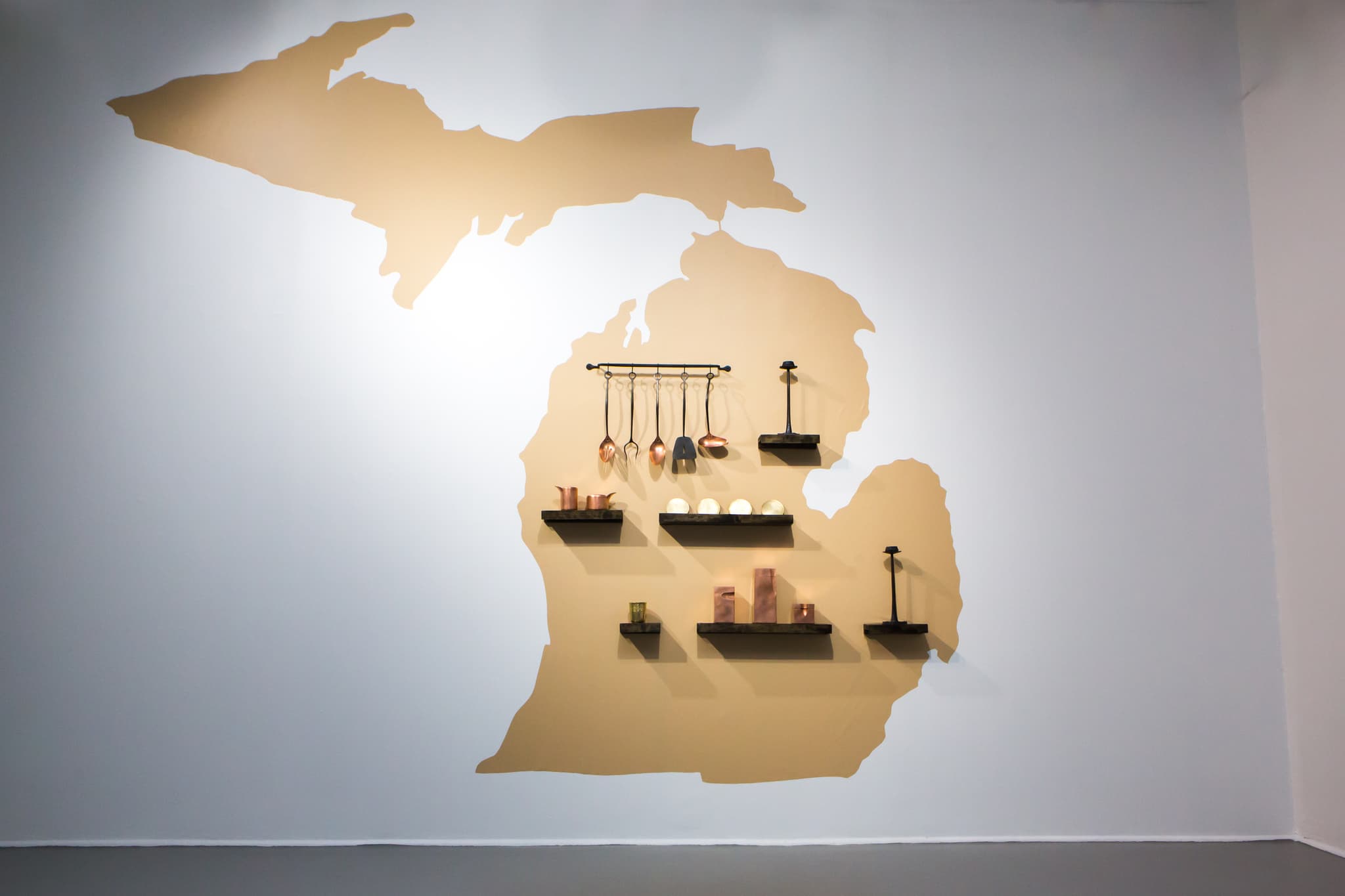 Installation view, Culture Hustlers at Mills Gallery, Boston Center for the Arts, January 2018. Smith Shop, Detroit, Michigan. Photo by Melissa Blackall.