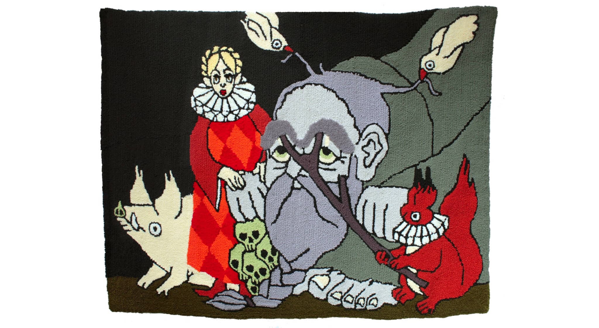 Haley Wood, The Ogre’s Beautiful Daughter, 2022. Acrylic yarn, hand-tufted, 39 x 50 in. Photo courtesy Abigail Ogilvy Gallery.