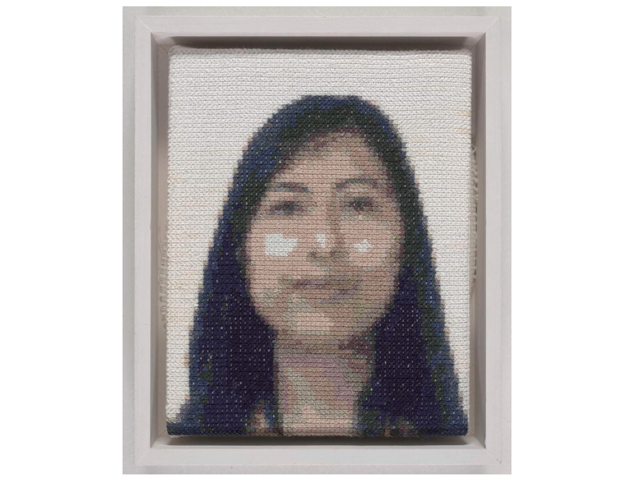 Nancy E. Rivera, Self-Portrait, American Daughter, 2017, 2020. Embroidery floss on cotton cross stitch fabric. Hood Museum of Art, Dartmouth: Purchased through the Contemporary Art Fund; 2024.42.5. © Nancy E. Rivera. Courtesy of Hood Museum of Art, Dartmouth.