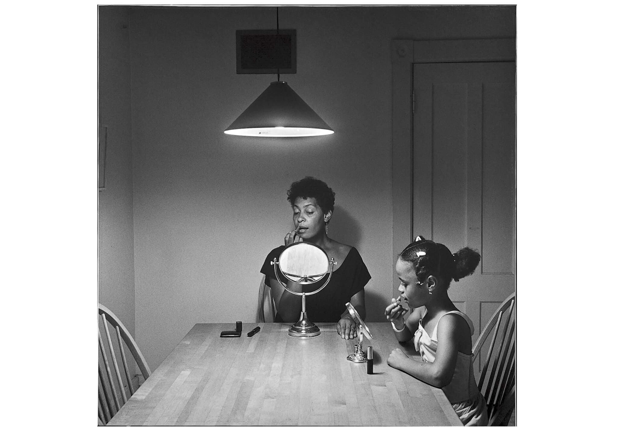 Carrie Mae Weems, Untitled (Make-up with Daughter), 1990. Gelatin silver print. Hood Museum of Art, Dartmouth: Purchased through the Harry Shafer Fisher 1966 Memorial Fund; PH.991.46. © Carrie Mae Weems.