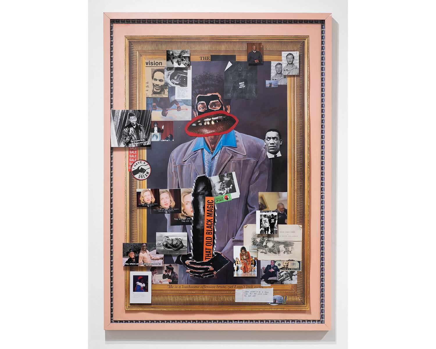 Zora J Murff, Woah Nigga, Die Slow Nigga (Cooning), installation view, 2022. Mixed-media collage. 39 1/2 x 28 inches. Courtesy of Abakus Projects.