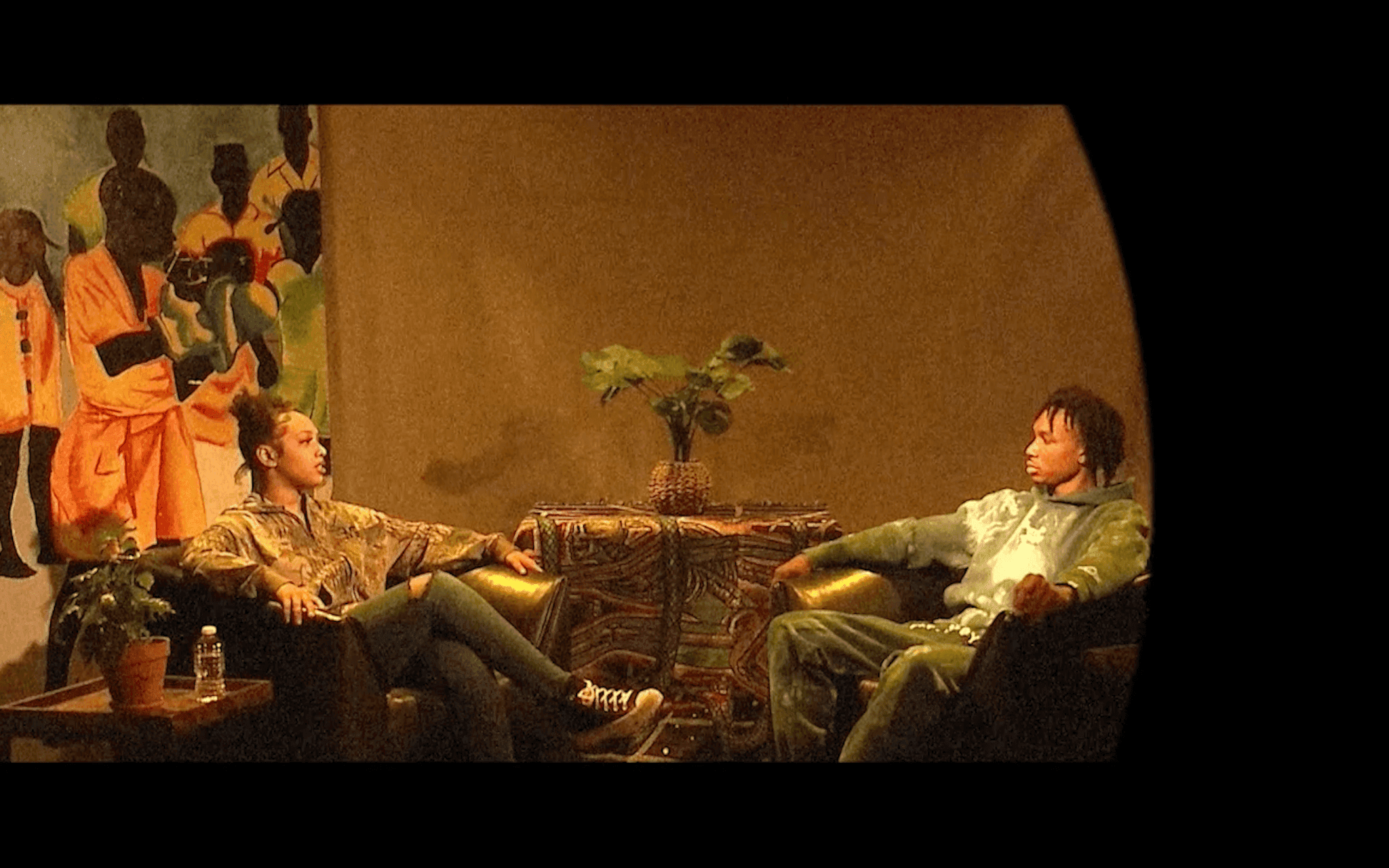 Still from IMAGINE W/ KEI & PURPOSE: ITERATION 1.10, the first episode in the Imagine W/ docuseries. From left to right, Boston musical artist kei in conversation with Cidjud (CJ) Felix. Photo courtesy of Circle Squared.