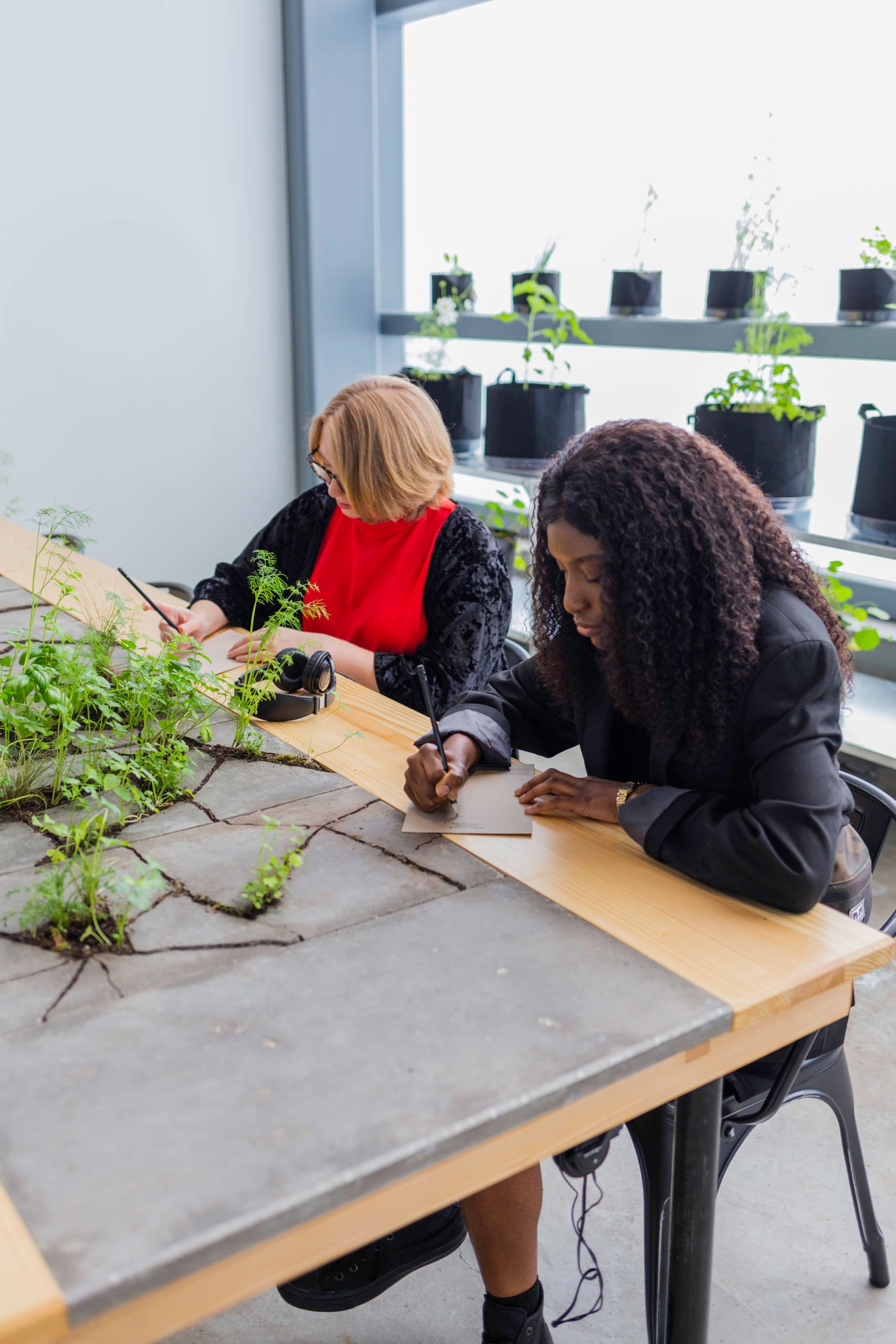 In the summer of 2019, visitors to the ICA’s Watershed listened to stories recorded at Comida Casera events and participated in activities at Rydz’s table for Aquí y allá: juntos a la mesa. Photo by Mel Taing.