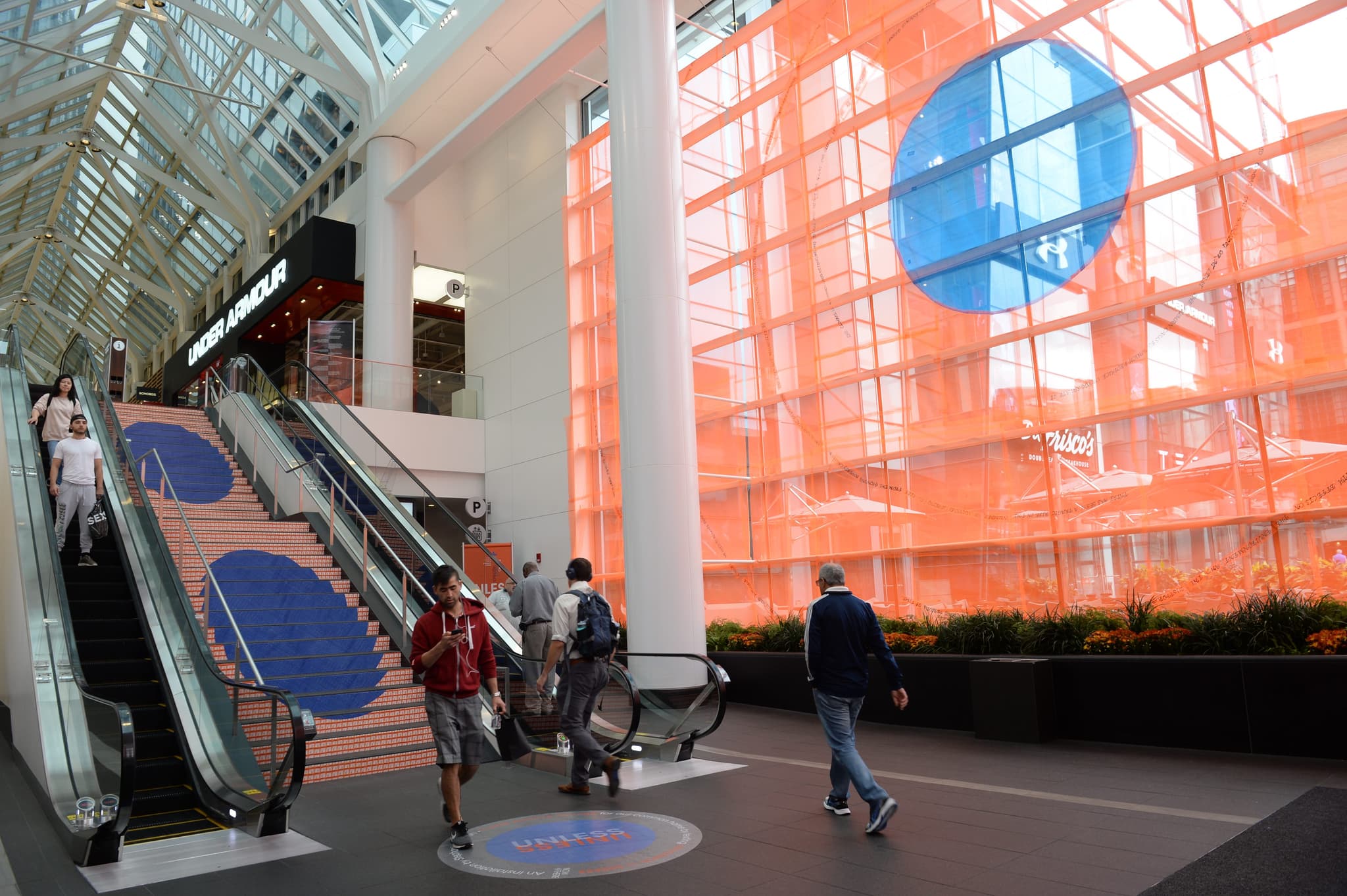 Stephanie Cardon: Now + There, the producer [of the piece], took me to the space and when I saw it, I was taken aback because I’ve only ever worked in smaller spaces. I started thinking about how the site could influence the piece. One of the limitations, of course, was that people walking through [the Prudential Center] would not be in a mindset to view art. In order to get attention, it needed to be large and minimal.