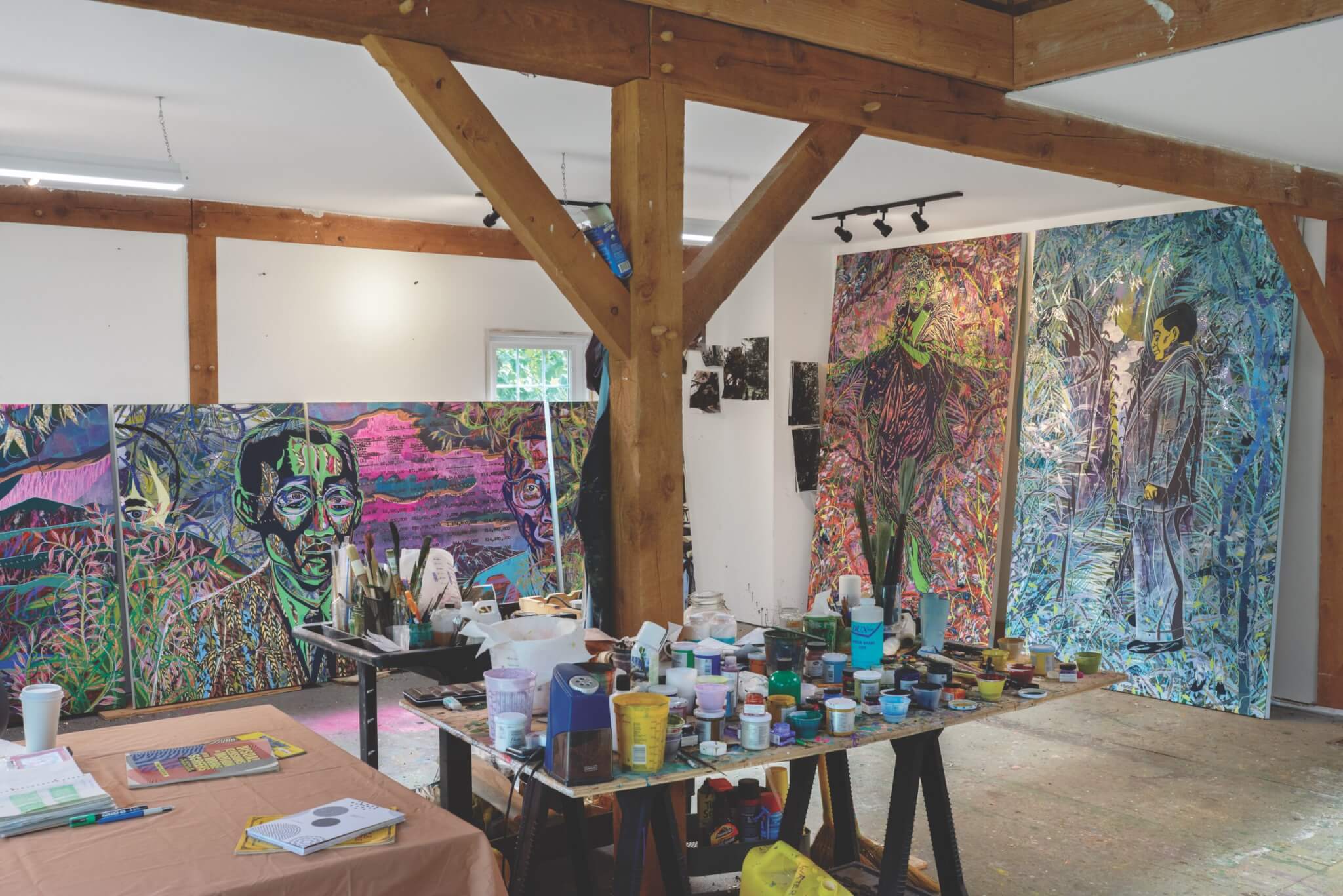 Inside the artist’s studio just days before the paintings made their way to ICA, Boston. Photo by Izzy Leung for Boston Art Review.