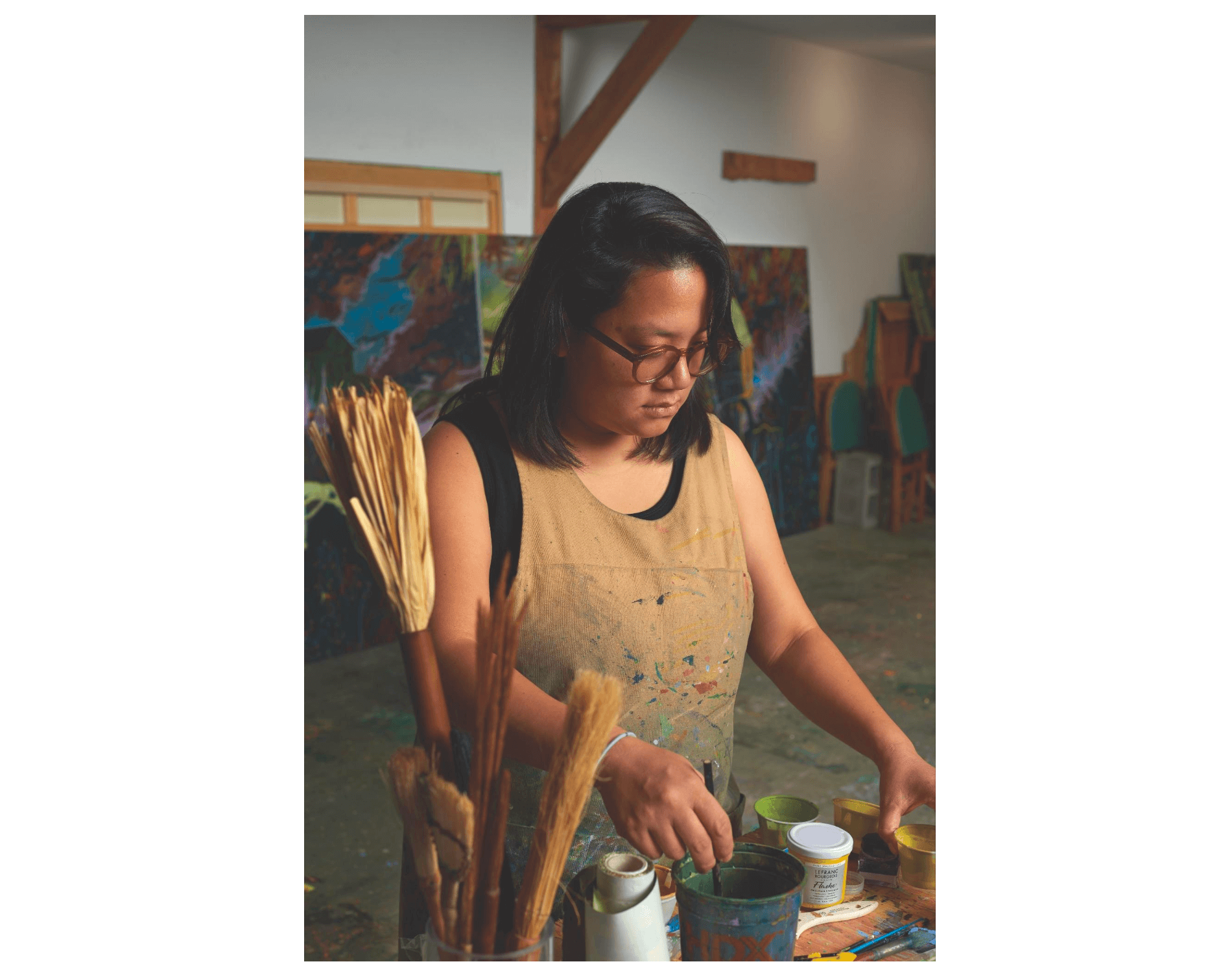 Tammy Nguyen at work in her studio. Photo by Izzy Leung for Boston Art Review.