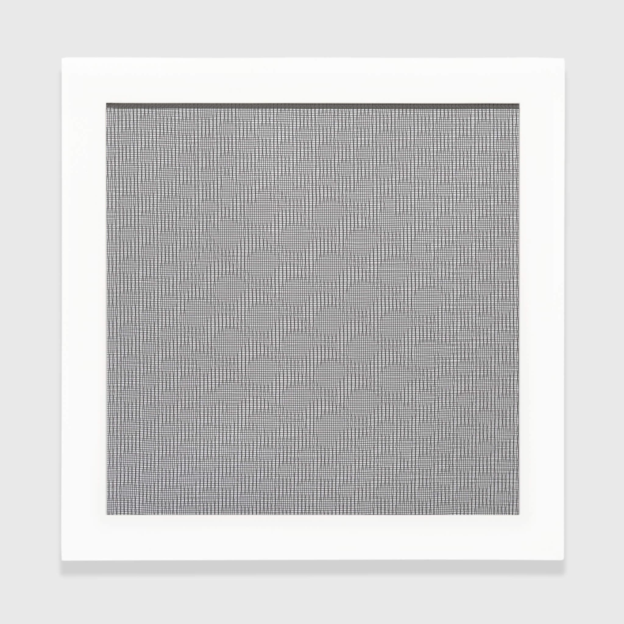 Tara Donovan, Screen Drawing, 2021. Aluminum insect screen. 15 ½” x 15 ½” x 1 ¼”. Courtesy of Krakow Witkin Gallery.