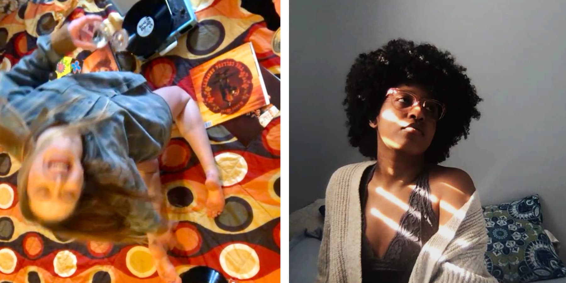 OJ Slaughter, (left) Dana Brooks in Newburyport, MA on 3.14 at 3:28, FaceTime screenshot, 2020, (right) Kris Nevaeh in Mattapan, MA on 3.14 at 3:42, Facetime screenshot, 2020. Images courtesy of the artist.