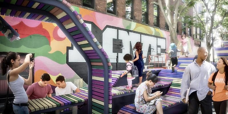 3D Design Builds Flower Benches for Federal Realty, 2019. Image Courtesy Artists for Humanity.