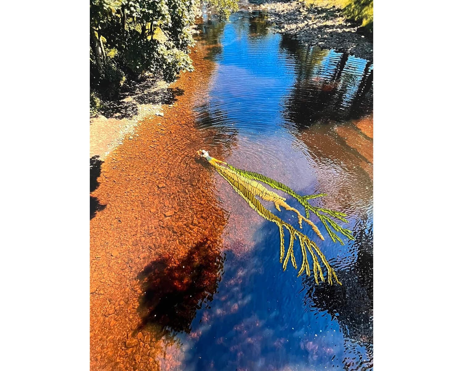 Caroline Bagenal, "Swimming Sculpture: Fell Foot," 2023. Photograph, 7" x 5" of sculpture composed of fabric, paint, bubblewrap, polystyrene, 8′ x 6′ x 4". Photo courtesy of the artist and Scott Geron.