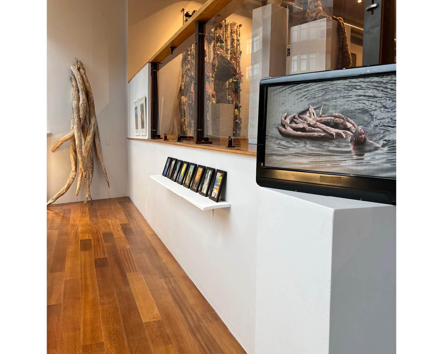Installation view of Caroline Bagenal, “Swimming Sculptures,” on view at Boston Sculptors Gallery through December 10, 2023. Photo courtesy of the artist.