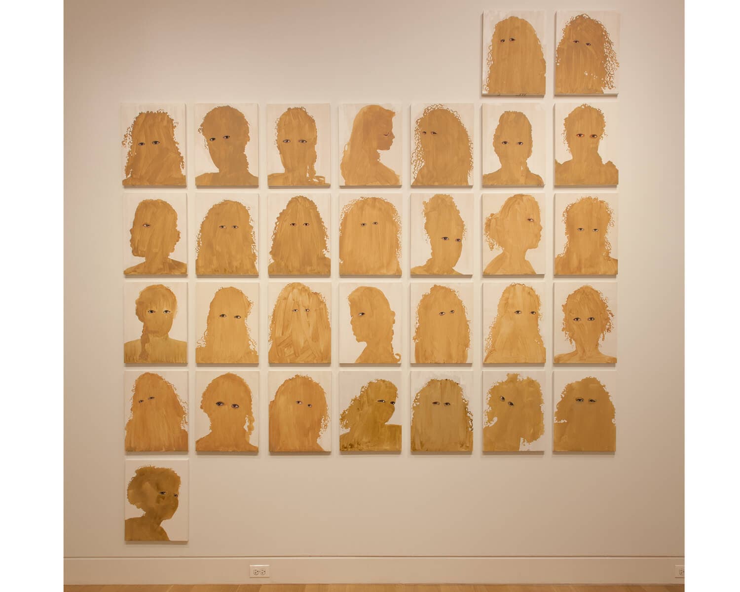 The first time I saw Firelei Báez’s Can I Pass? The Paper Bag to the Fan Test for the Month of July (2011) in her survey exhibition at the ICA, I thought she might have accidentally painted me. Right before my eyes was an entire wall of thirty-one faceless portraits with various curly hairstyles, bronze skin, and expressive almond eyes of a deep shade of brown, mirroring my own. These wooden panels—painted with ink, gouache, and graphite—look so much like me in fact, that on my third visit, when I joked with another museum-goer that the Hispaniola-born artist had actually made the works in my image, they believed me. And in a way, she might as well have.