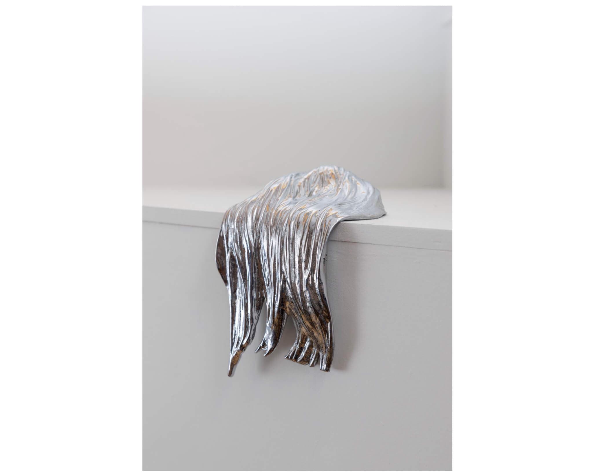 Michelle Lopez, ​Ghost Tresses II (Akira Revisited), 2010/2023. Bronze and chrome, approx. 8 x 6.5 x 6.5 inches. Courtesy of Tufts University Art Galleries.