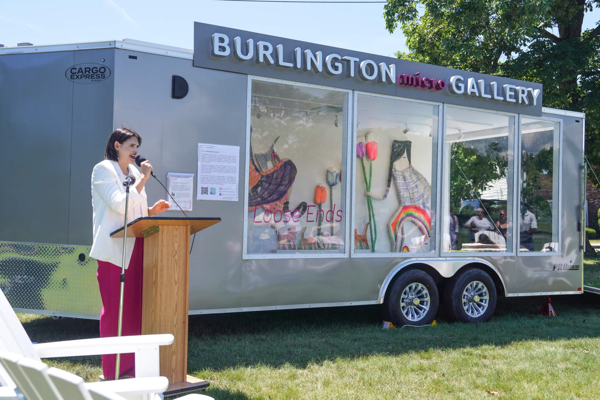 The last on that list is now home to the Burlington Micro Gallery, a solar-powered gallery on wheels that launched on June 27 on the Burlington Town Common and will hitch a ride to other public parks and the Burlington Mall. “I wanted it to be mobile and out in a park so that everyone felt welcome,” says gallery manager and curator Catherine LeComte Lecce. “And the art will also be viewable twenty-four seven from the windows of the gallery, so there’s never a barrier to entry.”