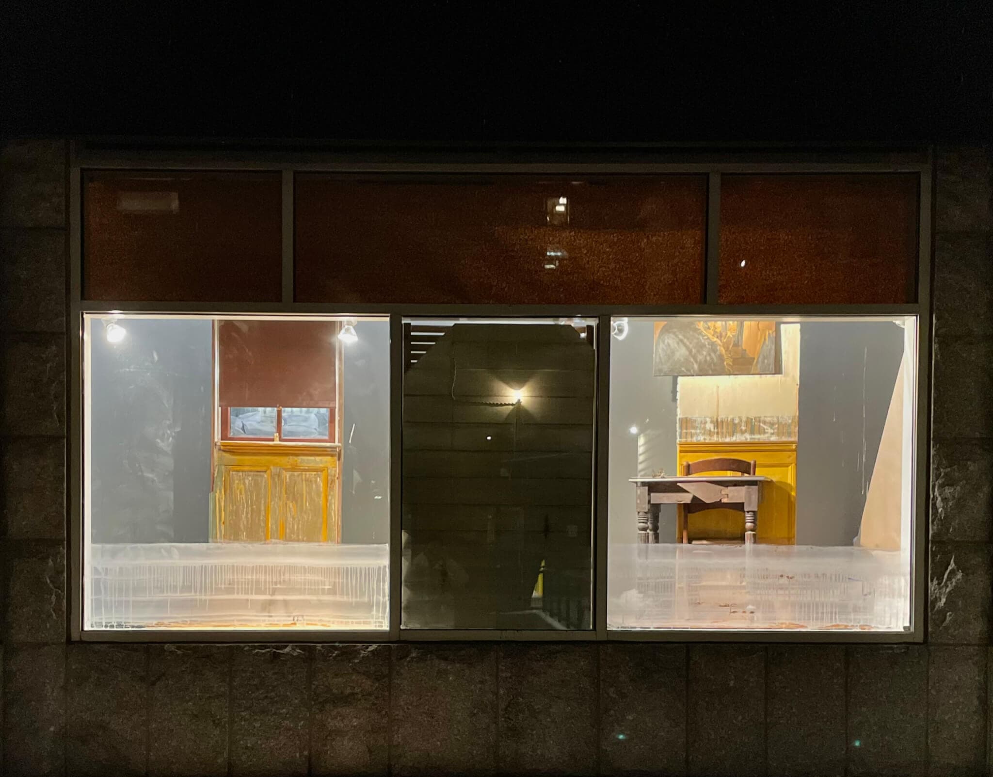 Spencer found a place full of possibility when she spotted a For Rent sign on a small shed near the West Concord Commuter Rail stop. Already equipped with a big window and a keypad-locked door, the structure had originally been intended to house a flat-screen advertising real estate listings, but it never ended up being used for that purpose. Instead, since the Tender launched in April of 2023 with a show of Spencer’s art, it’s hosted everything from Destiny Palmer’s mixed-media work and Joetta Maue’s photographs on fabric to M’Kenzy Cannon and Maya Rubio’s “public bathroom” sculpted from plaster and—on view now—invitations to movement from choreographer Jessica Roseman.