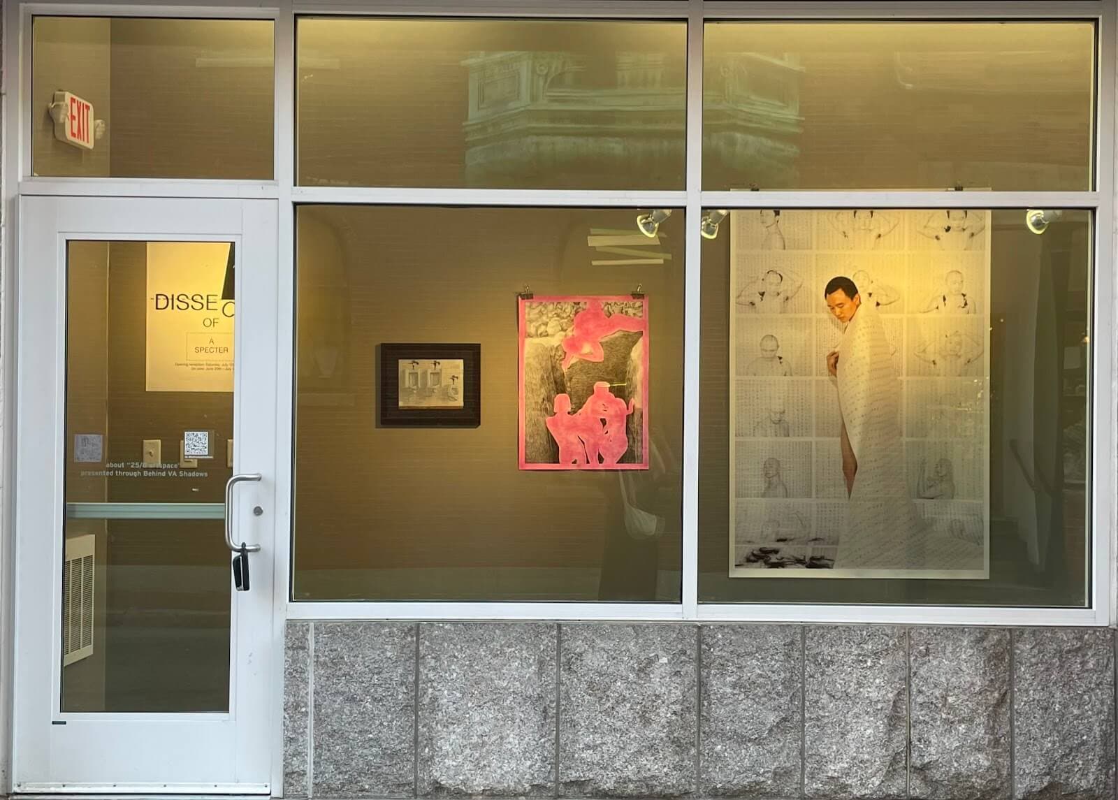 While searching for vacant storefronts, Yang was also busy with her own practice as a performance and installation artist. Her public projects found a fan in Denise Jillson, the executive director of the Harvard Square Business Association, and Yang asked Jillson if she had any recommendations for potential spaces. They landed on a long, narrow storefront on Linden Street that’s since hosted more than a dozen solo and group exhibitions. And on August 3, it’ll be the site for Behind VA Shadows’ annual summer party, which is doubling as a launch event for the collective’s first print catalog, an ambitious undertaking covering its programming since 2022 and clocking in at two hundred pages.