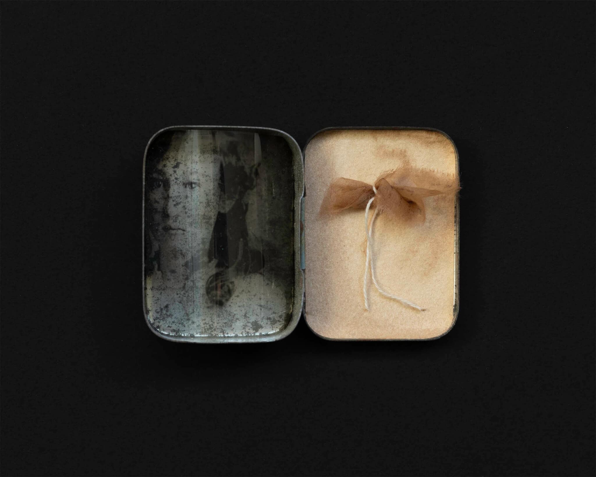 Sal Taylor Kydd, Make Believe, 2023. Mixed media in vintage tin. 3.5 x 2 inches. Courtesy of the Parsonage.