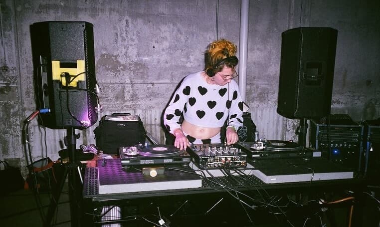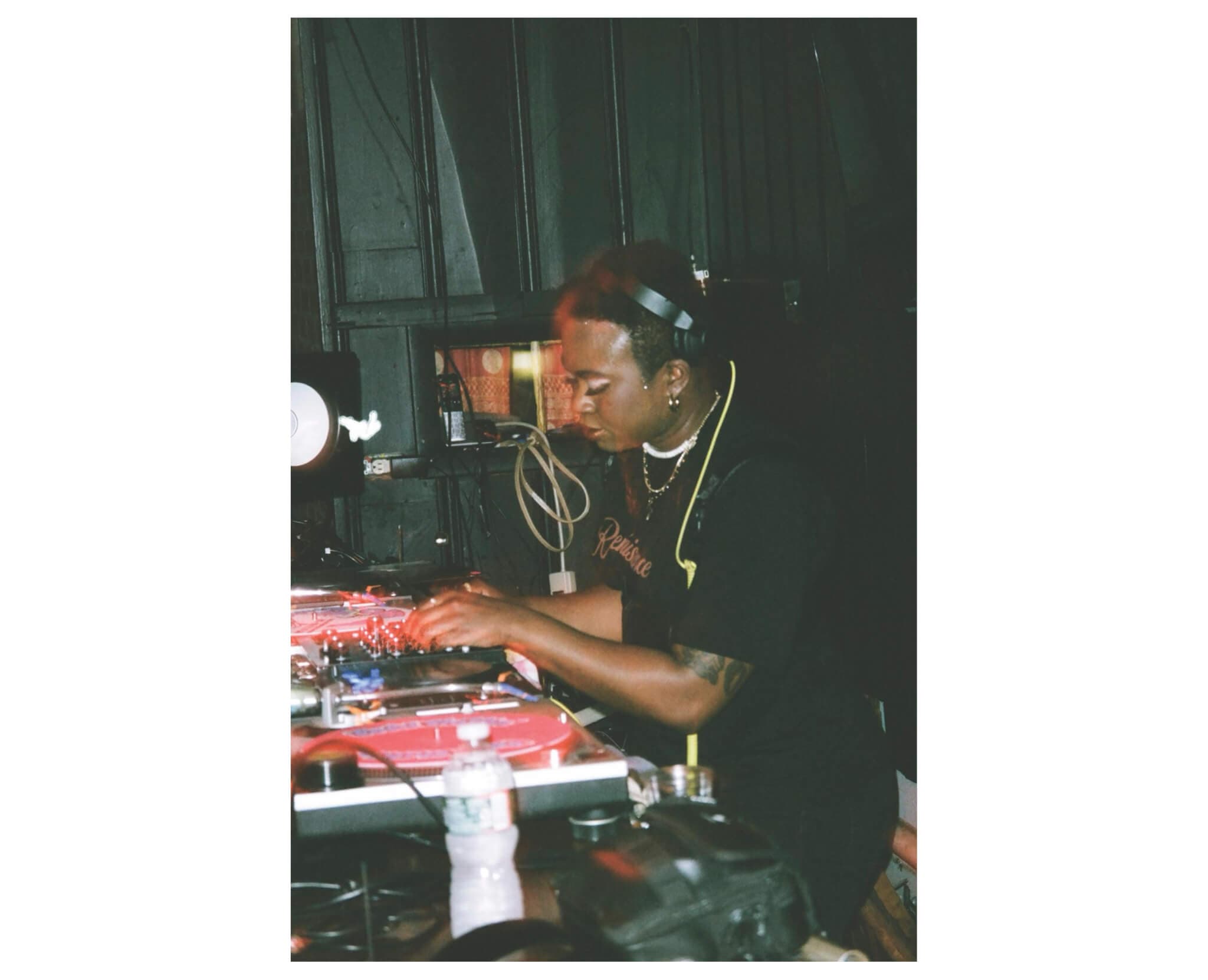 I try to think about who’s the crowd and what’s the vibe of the party—is this a kinky, goth, queer dungeon event, a daytime art market, or strictly a rave? What is the demographic? Why are people coming? And then I also think, what story am I trying to tell? Is something happening in my life or globally that I feel called to speak on and carry through in the music? I played a set in Pittsburgh back in November for this jubilant queer party, and Palestine was on my mind a lot. So, during my set, I slowed down the music for two minutes to play a track where different people say “from the river to the sea” in about twenty different languages. It’s a somber mood shift, but it felt important to me as an artist to show solidarity and comment on what’s happening in the outside world. I don’t think you can necessarily divorce politics from the dance floor.
