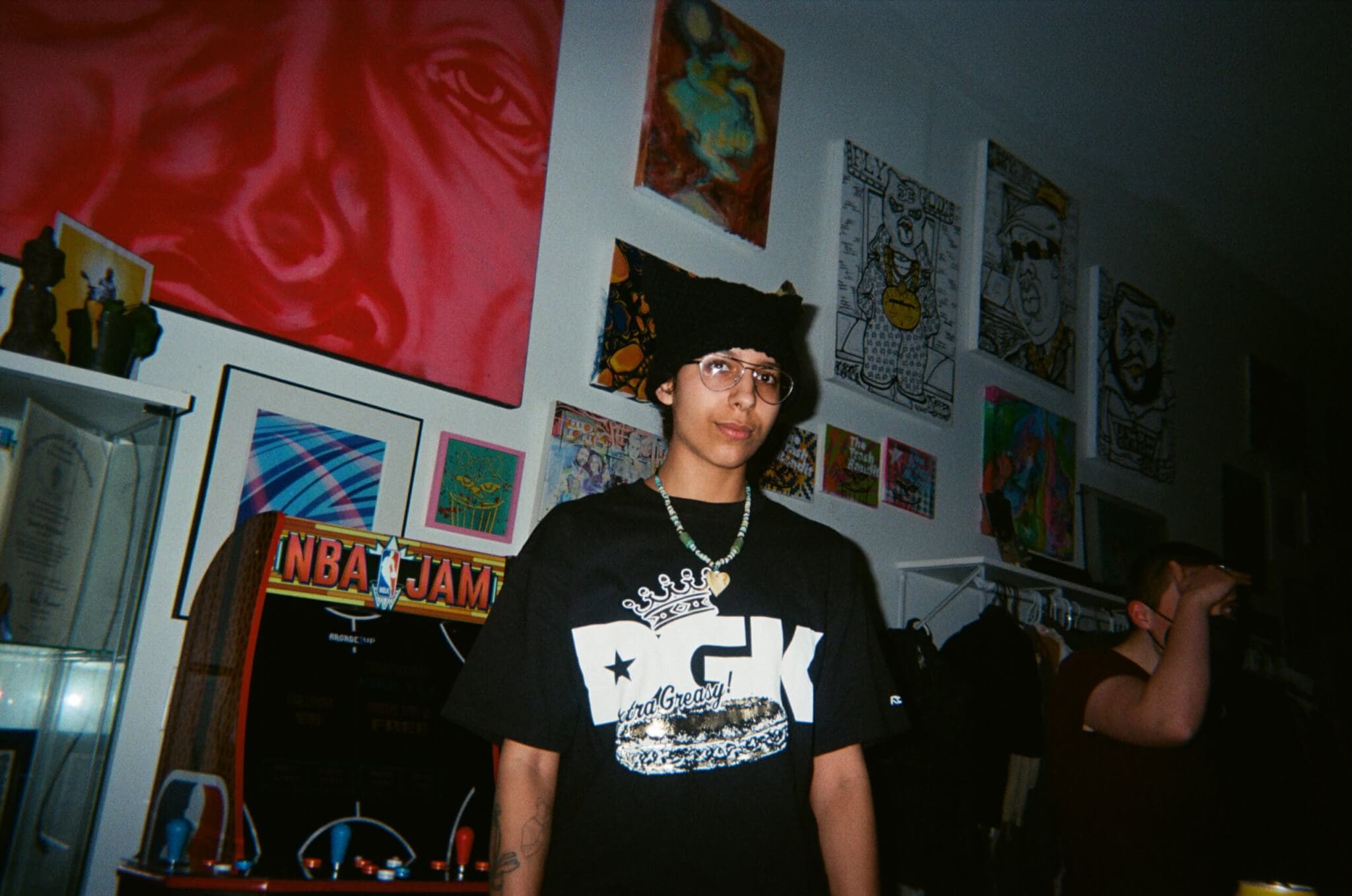 Trendy Shit Town was a DIY venue in Roxbury for more than fifteen years. Before shutting down in September 2023, TST regularly hosted raves, emo, metal, and noise shows, as well as artist showcases with a variety of vendors and installations. Dru continues to organize shows for other DIY spaces in Boston.