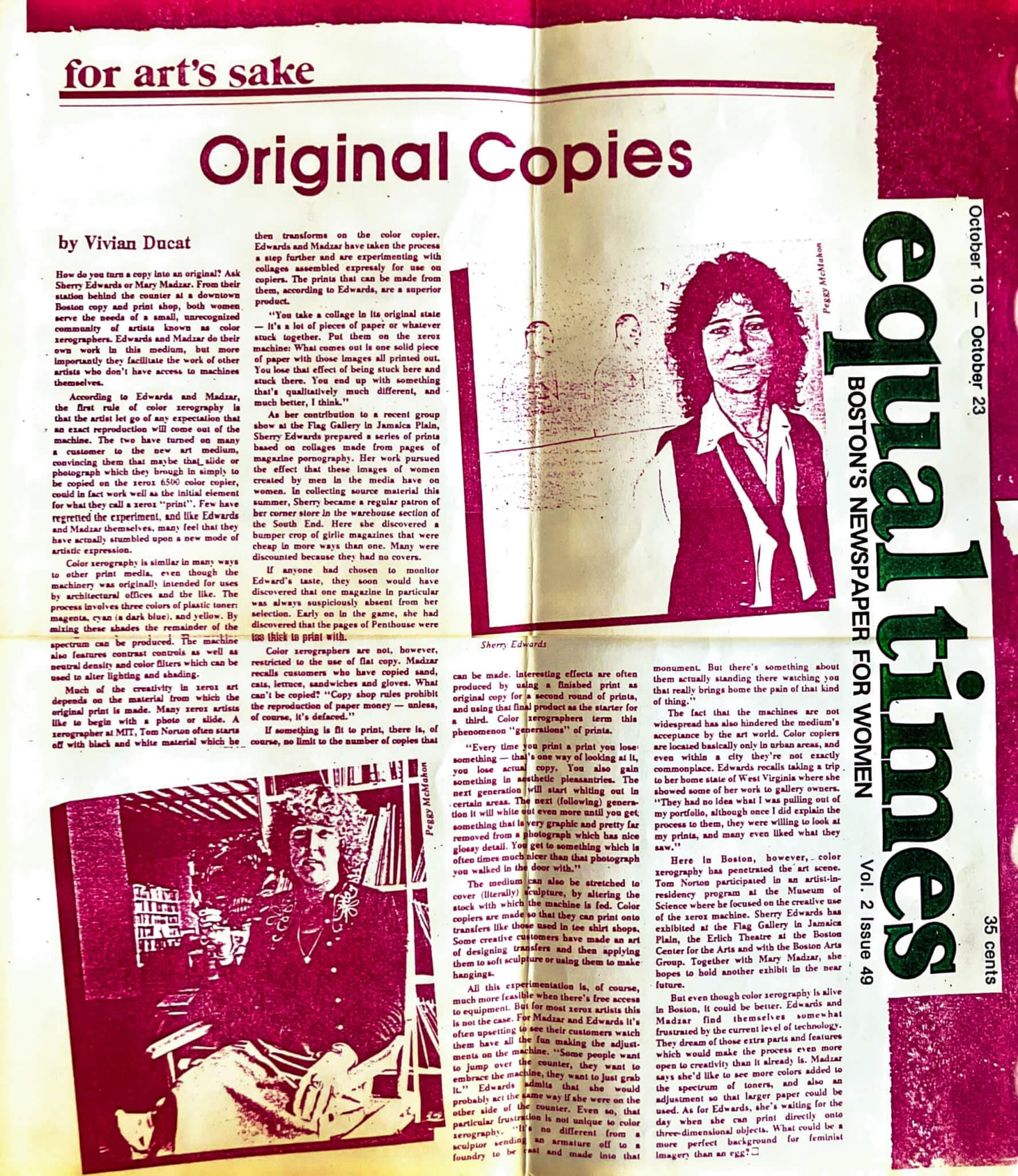 Archival photocopies made at Plastic Image of Equal Times newspaper, a feminist newspaper that circulated in Boston from the mid-1970s to the mid-1980s.