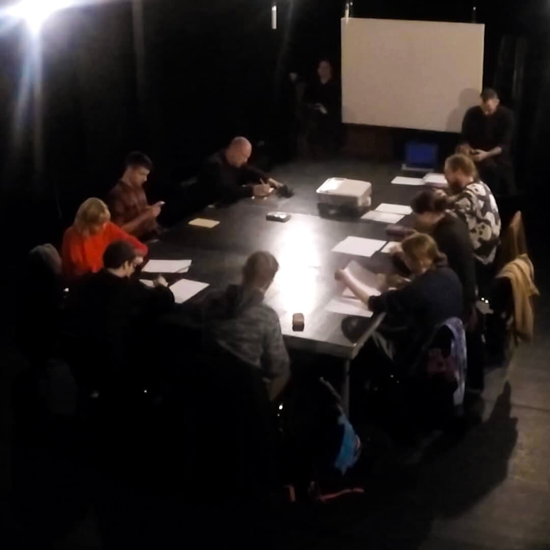 The second night—I fear the one you attended!—was suffused with a high level of skepticism. The participants were a more passive presence, which necessitated that the workshop leader Jenny take on a more active role as an object of scrutiny.