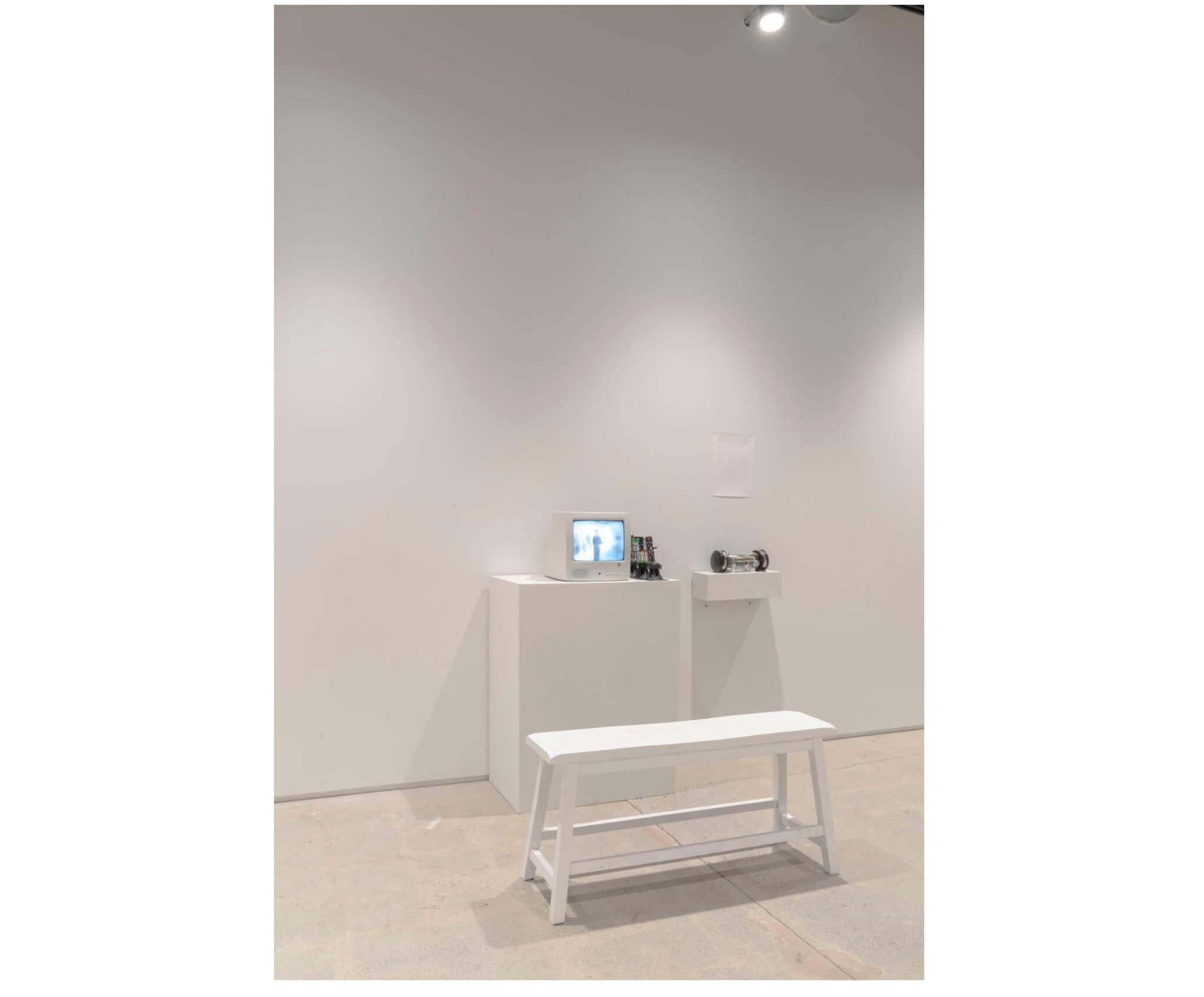The white-cube minimalism of the gallery maintains the focus on the sense of sound. It features work by Erik DeLuca, Alvin Lucier, Pauline Oliveros, Aviva Silverman, and Laurie Spiegel. Silverman and DeLuca are contemporaries who work in multiple media and have socially engaged practices, at times in conversation or collaboration with elders. The late Lucier and Oliveros as well as Spiegel are pioneering composers born in the first half of the twentieth century.