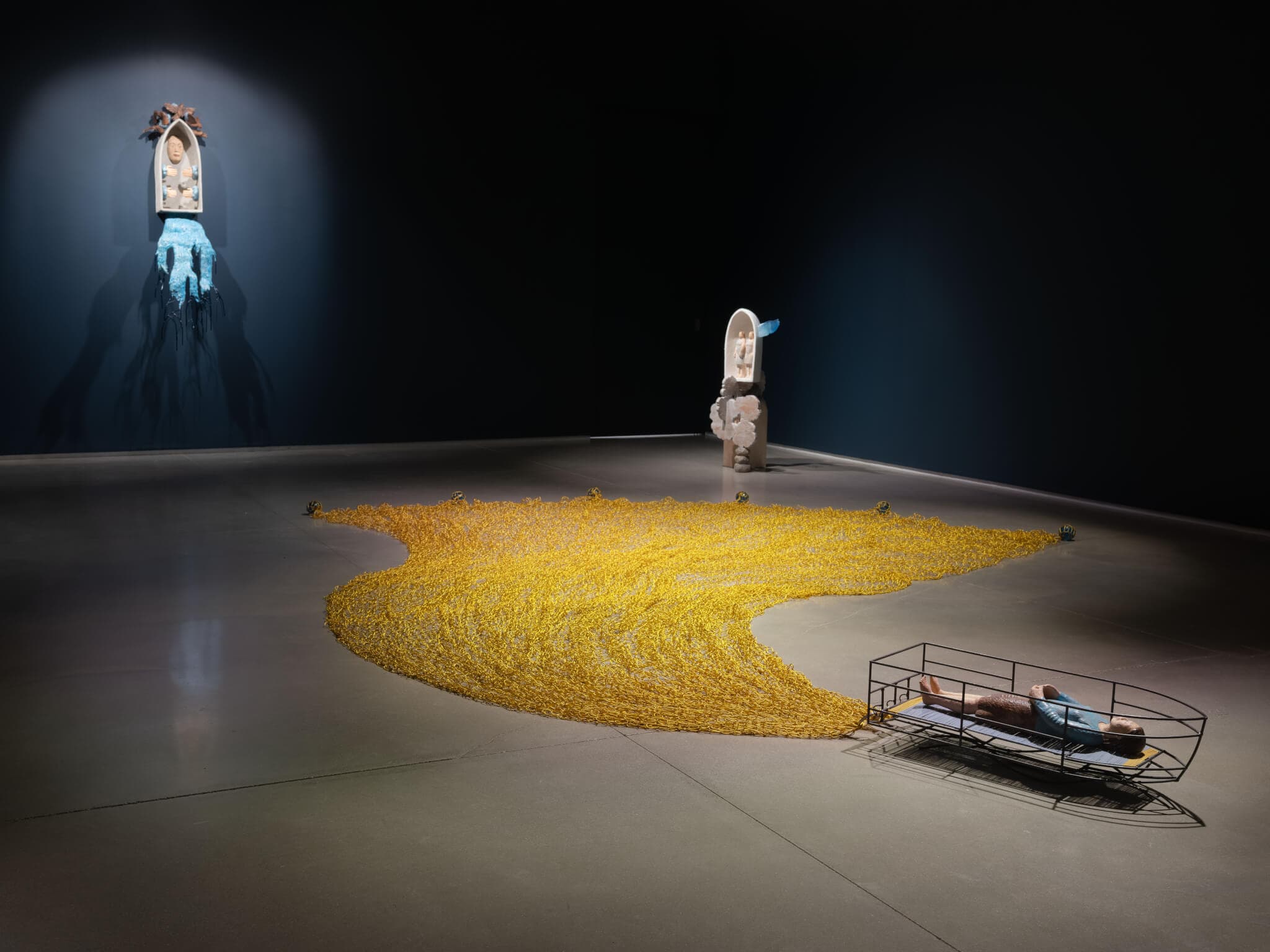 While it’s nearing the end of its run, sculptor Sachiko Akiyama’s solo exhibition at the Center for Maine Contemporary Art—“You Were Always the Ocean”—is worth a last-minute jaunt north. Comprised of five new sculptures—each featuring at least one female form—the show manages to conjure a world of its own, one that turns on the axis of This heart, this sea (2026), a large floor piece that spans a wide swath of the space. With a gleaming, handwoven net of golden thread wending its way through the wake of what could easily be perceived as a funerary vessel, the boat, much as the show itself, points viewers to consider what awaits us beyond expected horizons. —Jessica Shearer