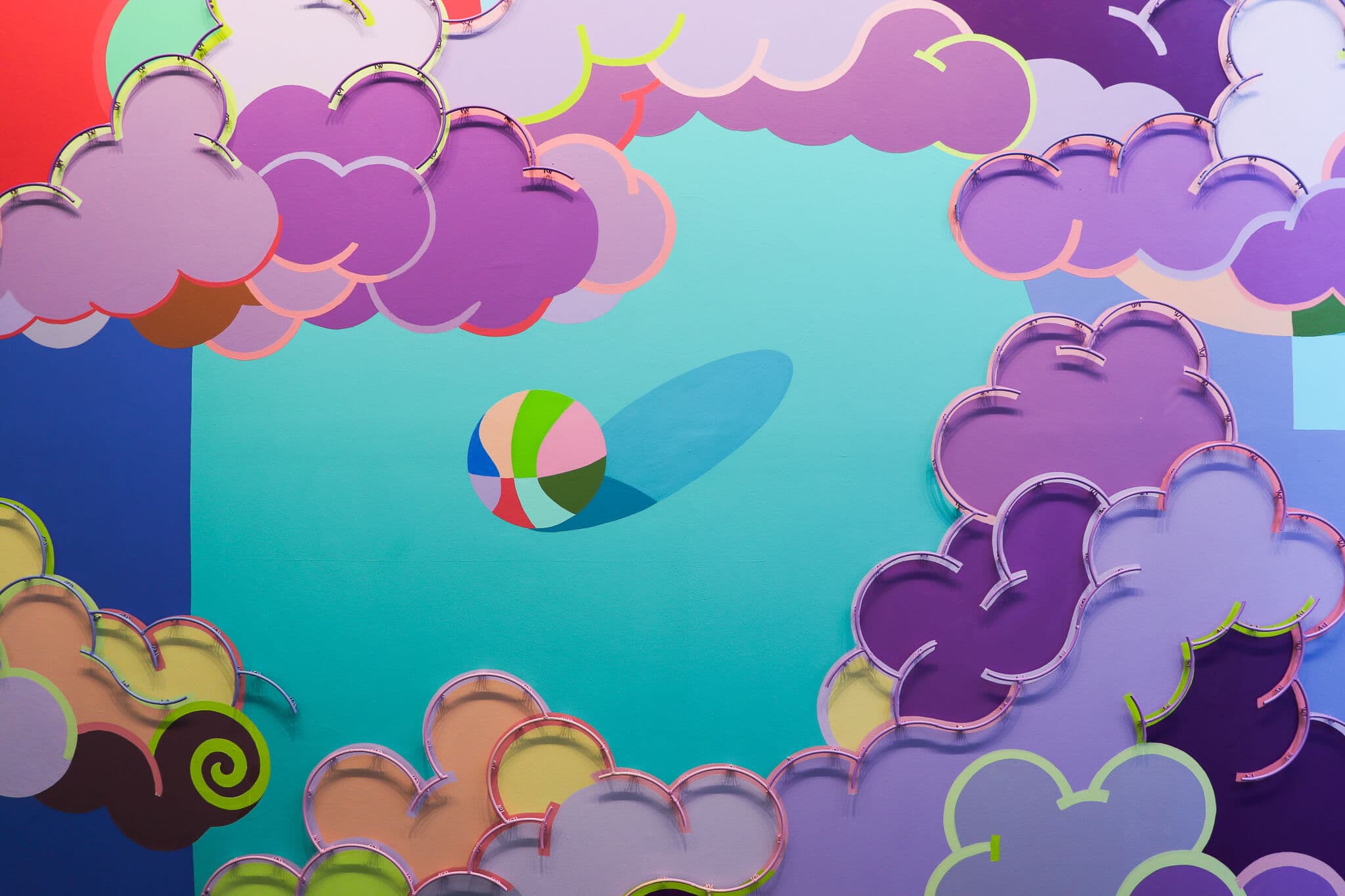 I was ecstatic to see Maria Molteni’s massive Gateway to Infinity (An Anti-monument) ground mural open on the Greenway this summer. Directly in dialogue with their socially engaged public art practice, Molteni’s “Soft Score” is a new, site-specific exhibition at the Fuller Craft Museum that explores the confluence of art and athletics (particularly basketball). While these may seem like two different worlds, Molteni reveals the overlaps in how we engage with art and athletics through our minds, bodies, and spirits, drawing on practices of play, systems, and ritual. From a large-scale wall mural made from welded basketball hoops to performance and sculptural works, “Soft Score” invites playful engagement, blurring the divide between spectator and participant with vivid color. —Gina Lindner